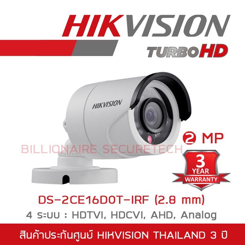 ข้อมูลแนะนำ HIKVISION กล้องวงจรปิด 4 ระบบ รุ่น DS-2CE16D0T-IRF (2.8 mm.) มีปุ่มปรับระบบในตัว (2 MP)