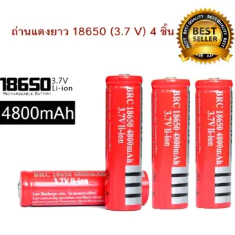 ถ่านชาร์จ 18650 ถ่านไฟฉายคุณภาพสูงในราคาย่อมเยาเหมาะสำหรับการใช้งานอิเล็กทรอนิกส์ต่าง ,ไฟฉาย , เลเซอร์ หรือ อื่นๆมาพร้อมความจุ 4800 mAh ใช้งานได้นาน ชาร์จไฟได้ถึง 500 ครั้ง ถ่านแดงยาว 18650 (3.7V) 4 ชิ้น